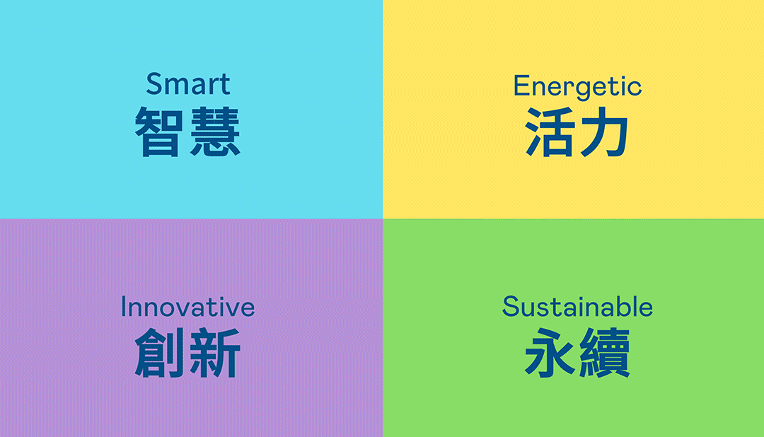 从稳重、信赖的DG视讯蓝开创新色彩,注入象征智慧蓝、活力黄、创新紫、永续绿的品牌色及动态多变的几何图形,呼应不设限的「Possibilities」精神,代表多元的专业技术及领域,在碰撞中相互触动、融合、延伸,持续激荡出更多新的可能性。